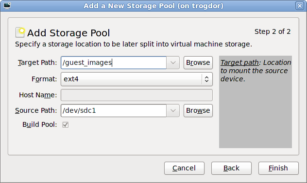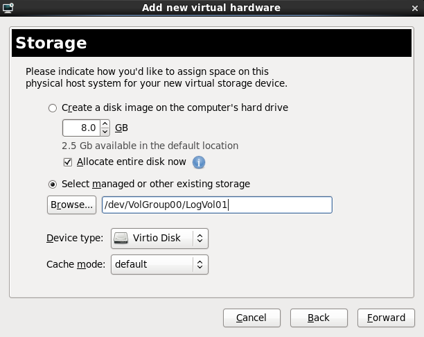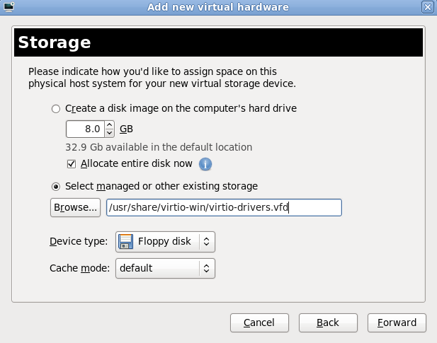 /var/lib/libvirt/images/ folder. If you use a different directory you must add the directory to the SELinux policy. Refer to Section 16.2, “SELinux and virtualization” for details.