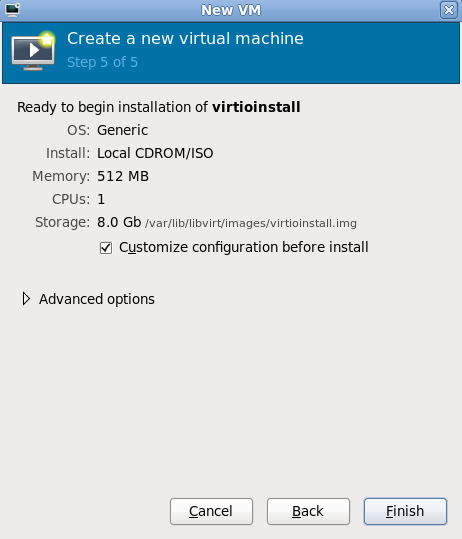 virt-install man page also documents each command option and important variables.